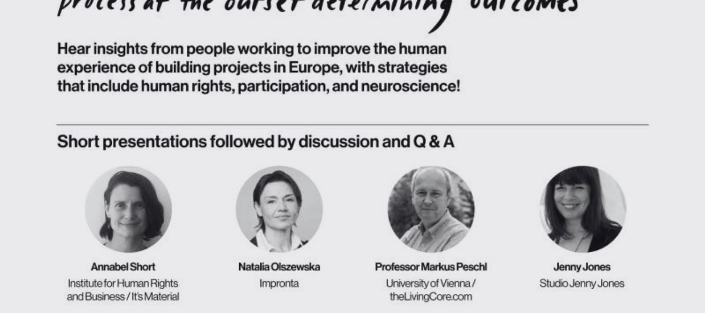 Register to hear a diverse range of perspectives in a conversation that draws on human rights, neuroscience and participation from IHRB's Built Environment Senior Advisor, Annabel Short and the following speakers on Wednesday, 15 September at 3pm CET: